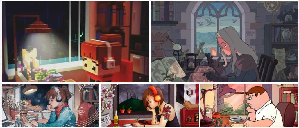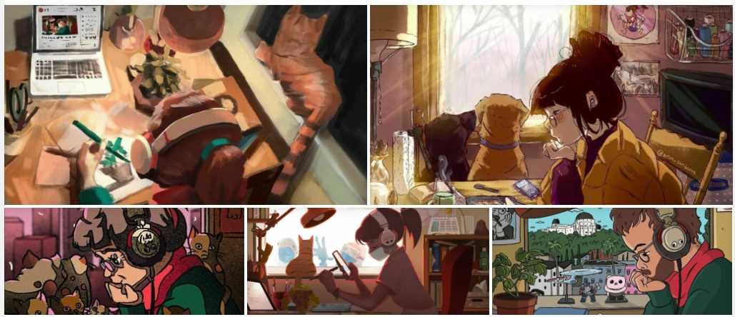 На самом деле авторы каналов с lo-fi хип-хопом используют в качестве обложек стримов и микстейпов самых разных персонажей. У кого-то это животные, у других — герои «Симпсонов», а некоторые вообще обходятся без каких-либо героев. Примерно в 2017 году визуальный ряд трансляций стал переплетаться с аниме-культурой — на обложках появились кадры из мультфильмов «Ковбой Бибоп» и «Принцесса Мононоке».