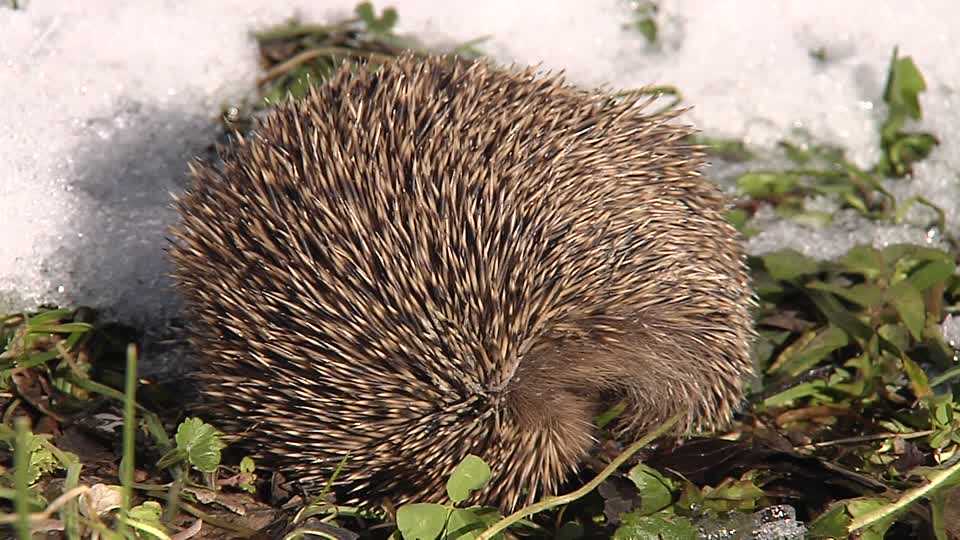 Спящий еж сворачивается в шар, его лапки и нос прижимаются к брюшку, хвост – к голове. Это снижает теплоотдачу с тех участков тела, которые оголены и беззащитны перед воздействием холодного воздуха. Температура животного в этот период становится очень низкой – всего лишь на градус выше, чем окружающая среда.