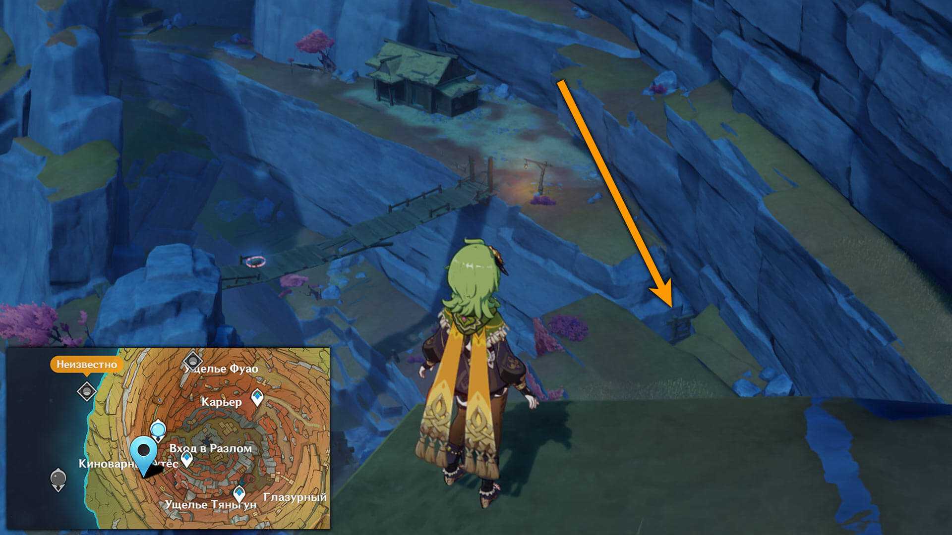 Первый раз попасть в Сумеру можно по тоннелю, вход в который находится в Разломе. Перемещаемся к Статуи Архонтов и прыгаем вниз, где находим новую Точку телепортации и тоннель.