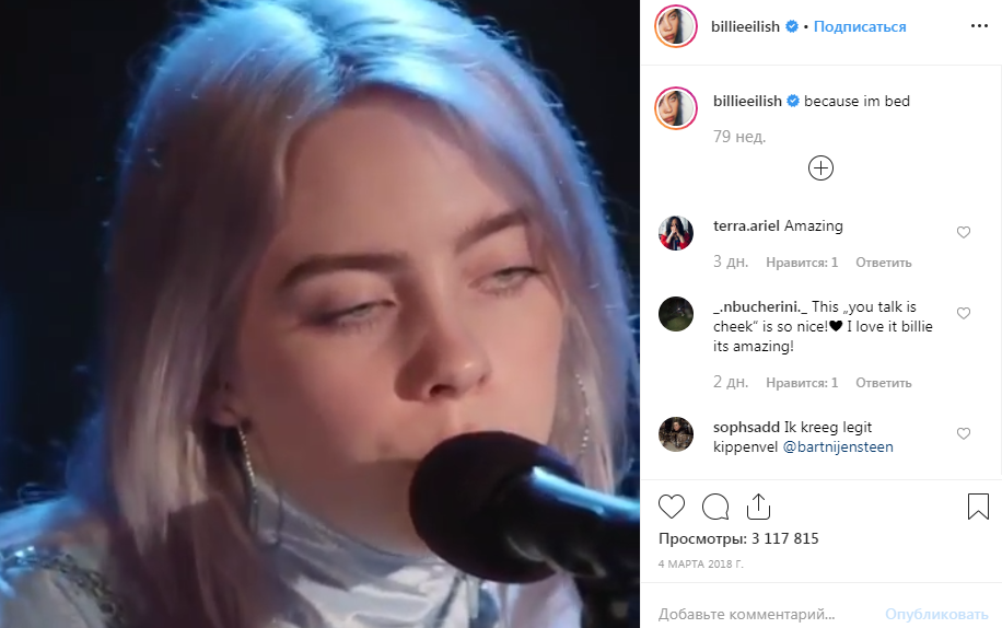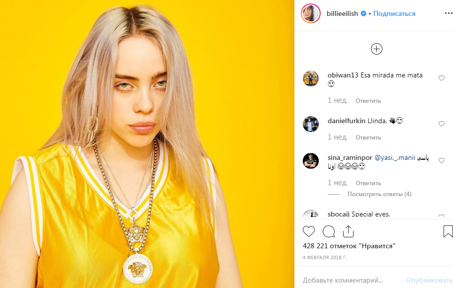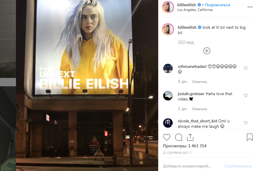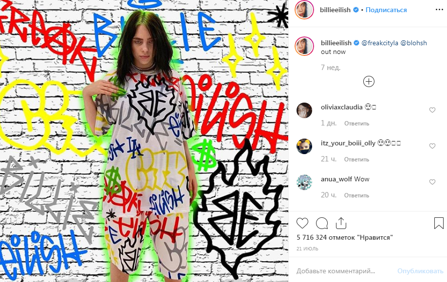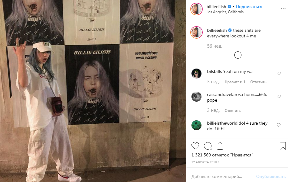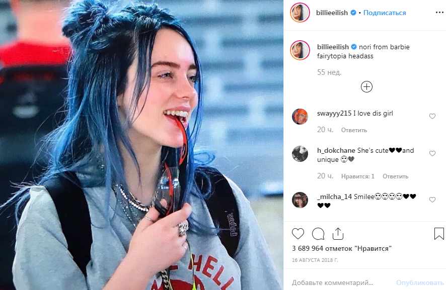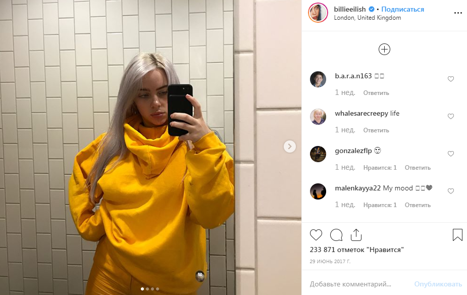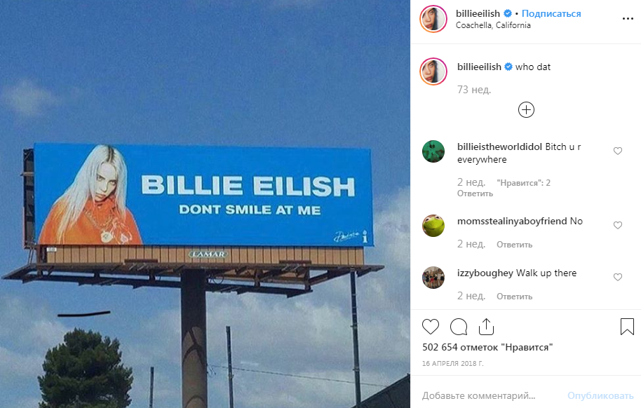 Знаковым годом в биографии Билли стал 2016 г. Именно тогда в Сети появился ее дебютный сингл и клип, с яркими танцами певицы