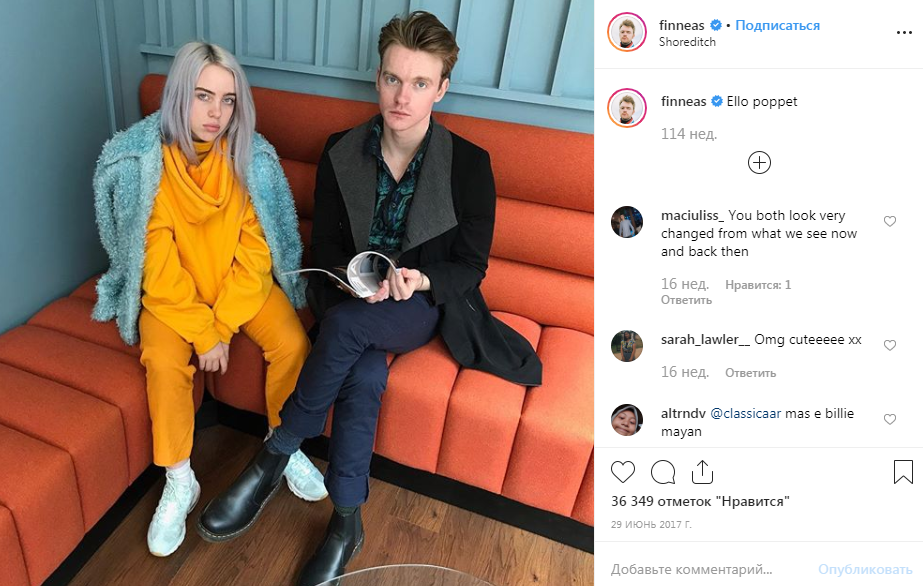 Билли Айлиш и ее брат. Инстаграм: https://www.instagram.com/finneas/