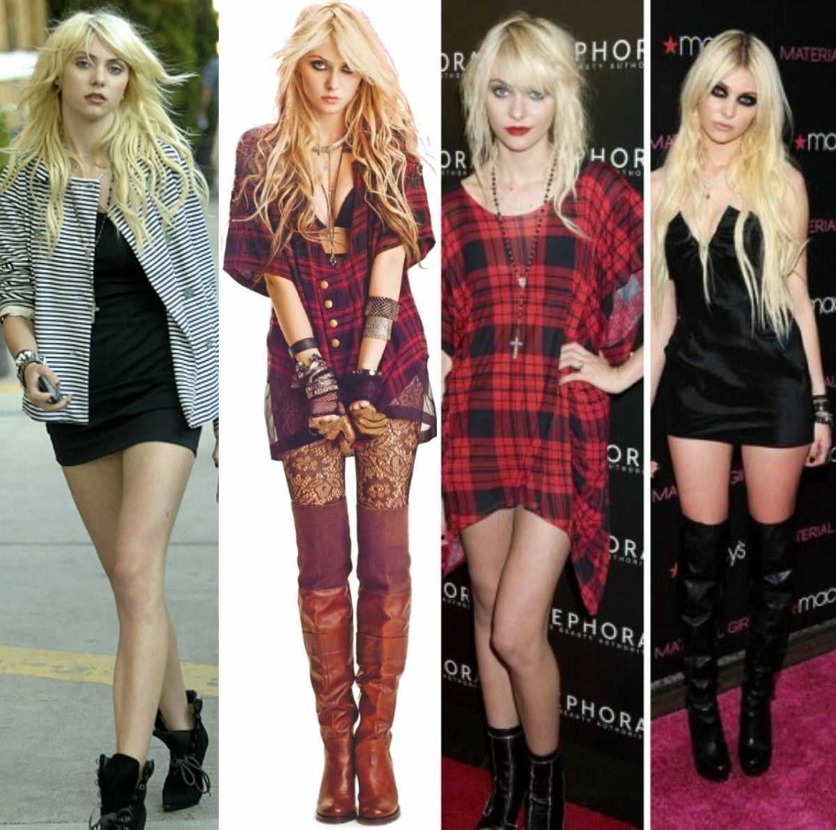 Визитной карточкой певицы стали чулки с подвязкой и кричаше красная помада на губах. Девушка без ума от косух, вещей в красно-чёрную клетку, обуви на платформе. Тэйлор обожает чёрный цвет и эпатажные наряды на сцене. Некоторые её образы и смелые заявления шокируют публику. Но пока критики осуждающе качают головами, Тэйлор продолжает успешную карьеру в качестве модели и рок-музыканта.