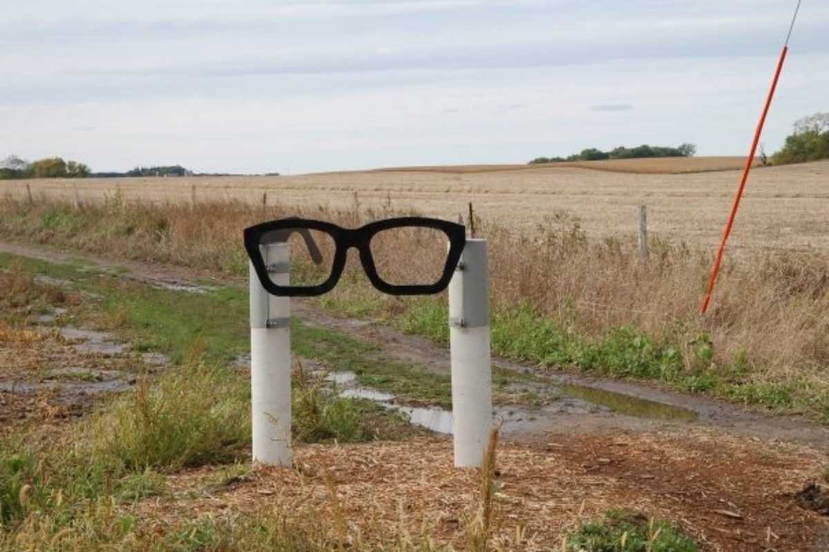 Указатель возле места катастрофы в виде очков Бадди Холли