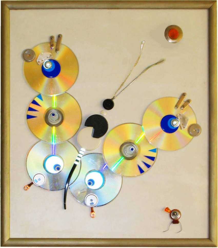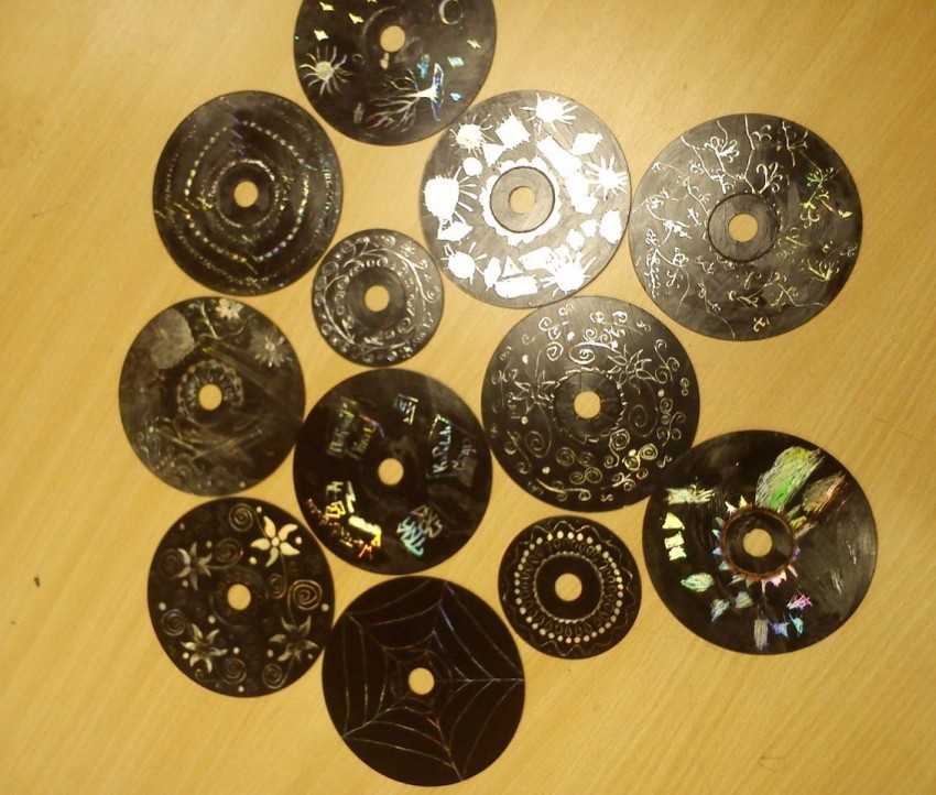 Чтобы сделать бабочек, потребуется много ненужных пластинок, перманентный маркер белого цвета, бумажные шаблоны бабочек разного размера, ножницы, пищевая фольга и духовка. Процесс работы выглядит следующим образом: