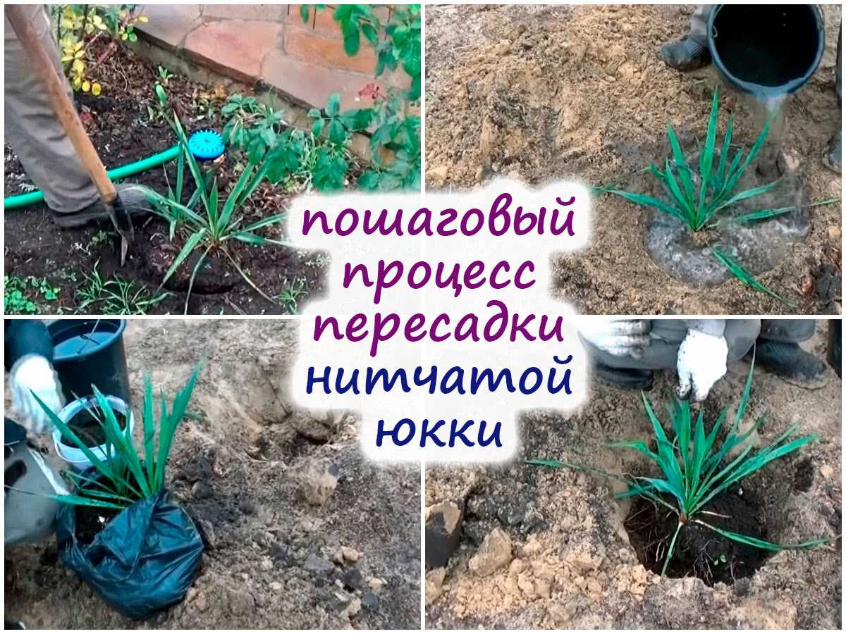 Растение нужно извлечь из земли вместе с земляным комом, осторожно доставить его к месту посадки и так же осторожно посадить. А если вам предстоит дальняя дорога, нужно поместить корни юкки в глиняную болтушку, чтобы они не пересохли