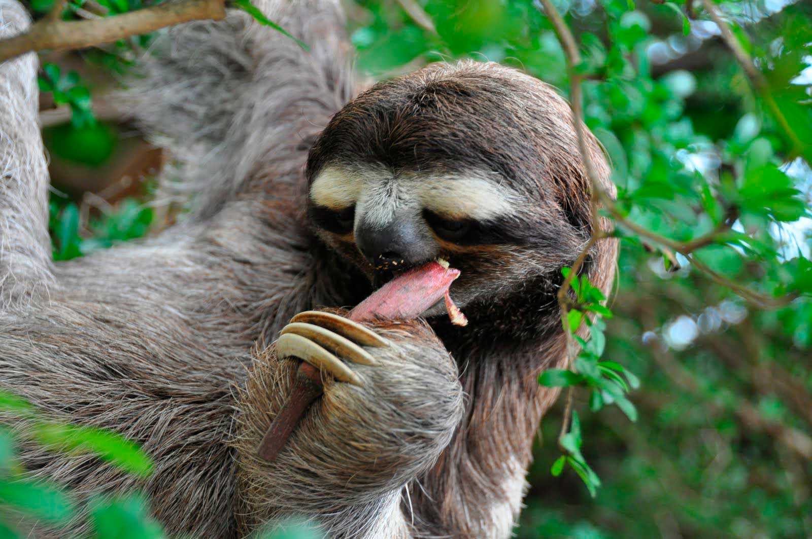 Ленивцы едят листья деревьев, это их основной рацион. Листья сложная пища в усвоении и к тому же слабопитательная. Поэтому устройство пищеварения у ленивцев своеобразное. Они имеют достаточно крупный желудок с множеством камер. Весь процесс пищеварения может занимать до месяца.