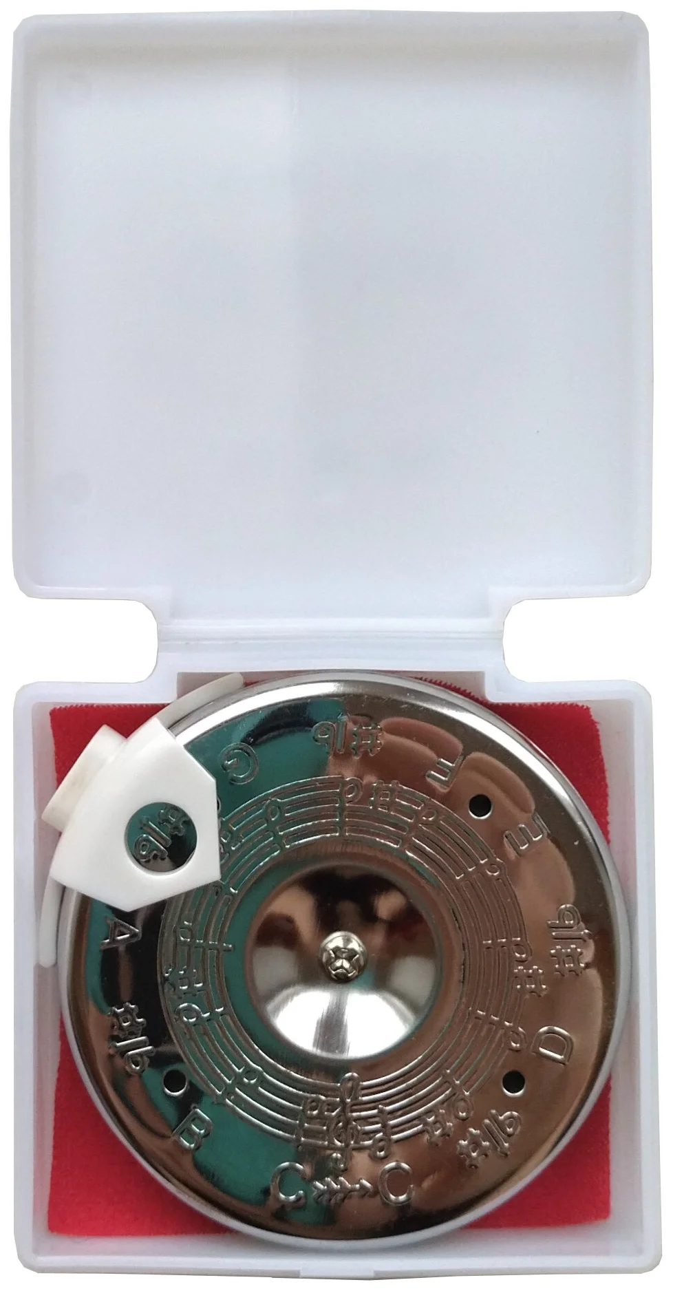 Прибор фиксирует эталонную высоту звука, помогая настраивать музыкальные инструменты любого типа.