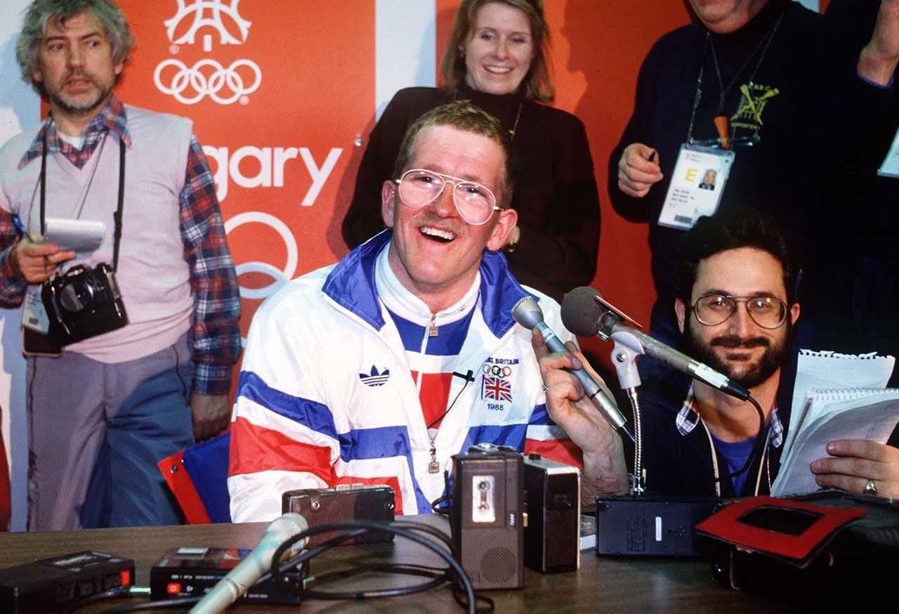 В 1986 году он переехал в Лейк-Плесид, чтобы иметь доступ к более сложным горнолыжным трассам, и начал усиленно готовиться к Олимпийским играм в Калгари. Но деньги вскоре закончились, а олимпийская мечта осталась. И тут Эдди на глаза попался здоровенный трамплин, с которого лихо скатывались лыжники и летели многие десятки метров вперед, смешно расставив ноги. То что надо! 60 лет Великобритания не выставляла прыгунов с трамплина на Олимпийские игры — да у него просто не будет конкурентов! Эдди никогда не приходилось прыгать на лыжах, но нужно было начинать. После пары часов на 15-ти метровом трамплине Эдди перебрался на 40-ка метровый, и первое же приземление стало неудачным. Затем еще одно, и снова, и снова…