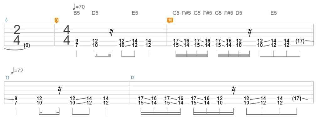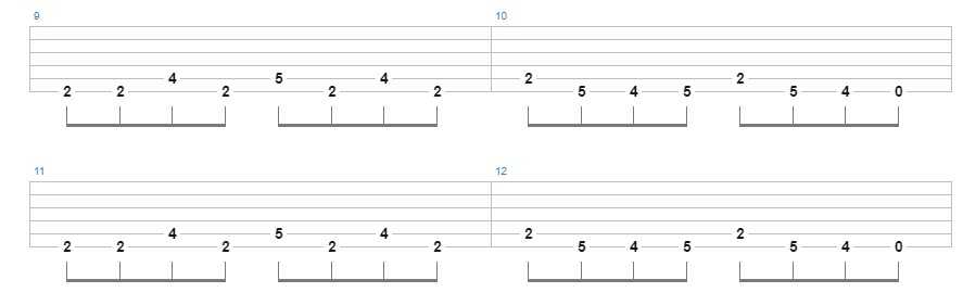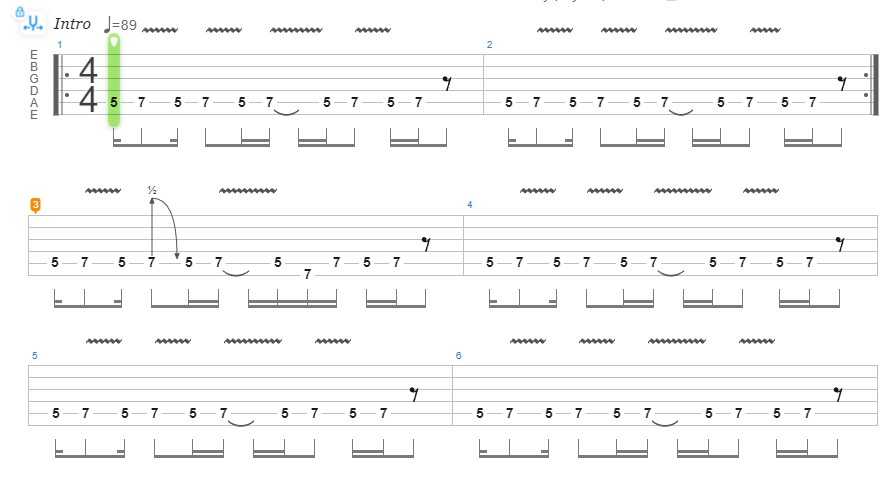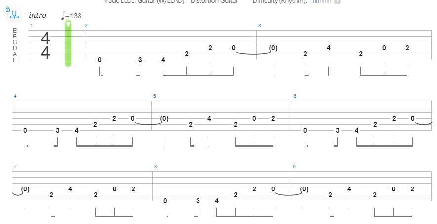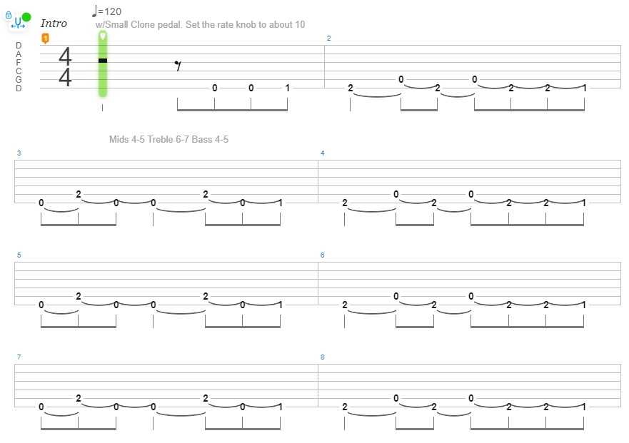 Этот «топовый» рифф также играется довольно просто. Существуют разные варианты исполнения риффа, в зависимости то уровня подготовки гитариста.
