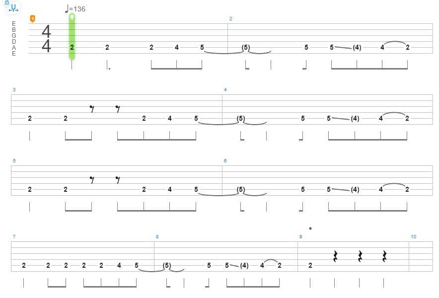 Легендарный рифф в музыкальном мире рок-гитаристов. Играется на одной струне.
