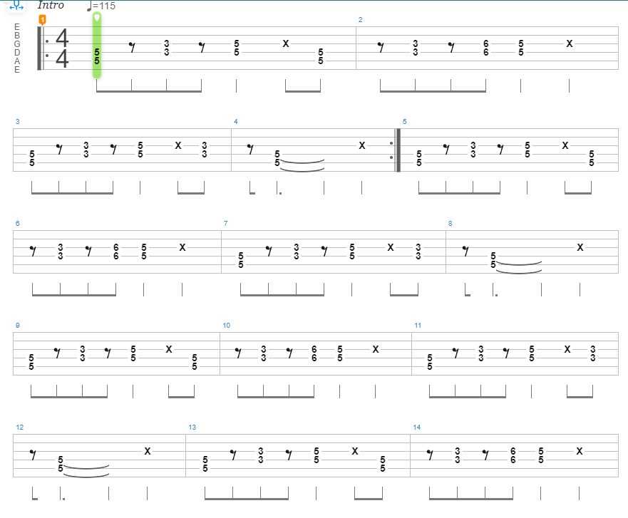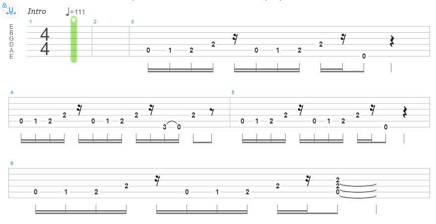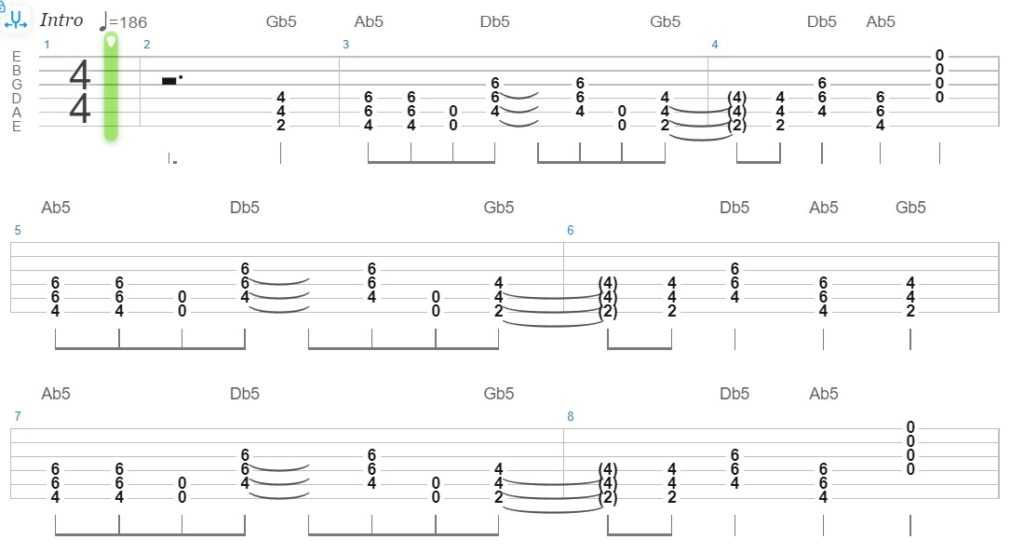 Рифф из репертуара американской рок-группы играется довольно легко. Главное, уметь играть квинты и квинтовые аккорды, соответственно.