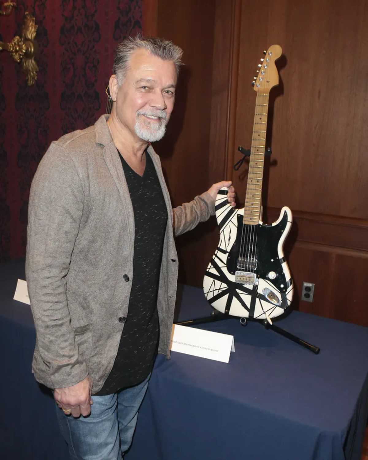 Ван Хален позирует со своей «гитарой Франкенштейна» на выставке в Смитсоновском Национальном музее американской истории в 2015 году