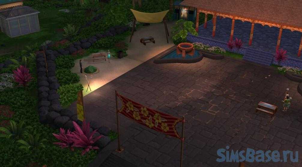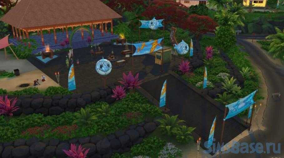 Яма для барбекю всегда находится в павильоне, но сим будет использовать ее, чтобы приготовить большое барбекю во время этого мероприятия. Также на соседнем столе для пикника стоит полная миска кавы. Барбекю — это общественное мероприятие, на котором симы могут болтать под пальмовыми листьями, пока их еда готовится. Когда еда будет готова, вы можете подать огромное блюдо с островной едой, которую каждый сам себе накормит. Вы можете насладиться чашкой (или несколькими) кавы, пока болтаете и едите.