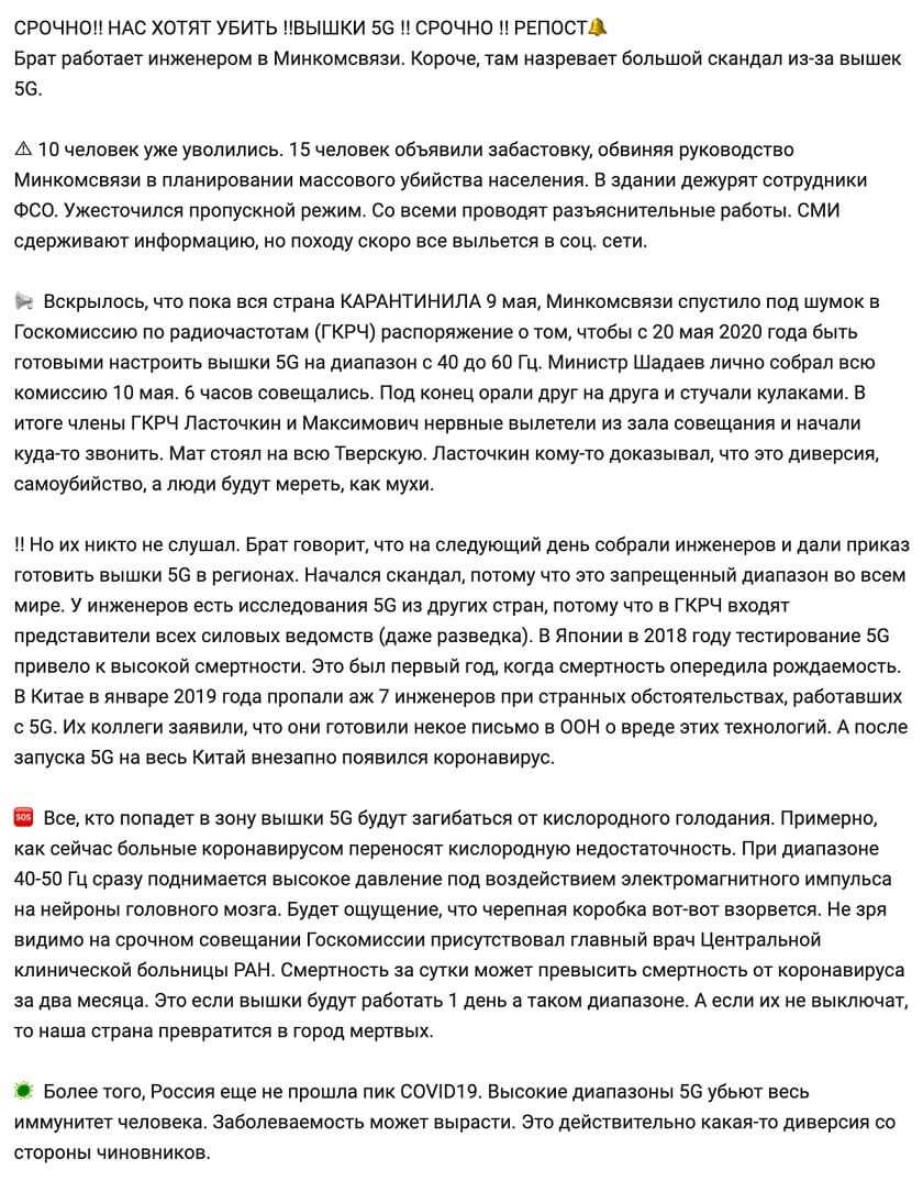 Например, весной 2020 года в Британии пытались поджечь 20 сотовых вышек из-за появления слуха о том, что 5G распространяет коронавирус. А ещё раньше поджог, который совершили поверившие в этот фейк, уничтожил оборудование для передачи связи, которой пользовались аварийно-спасательные службы и несколько мобильных операторов, лишив кого-то тем самым, возможно, надежды на спасение.