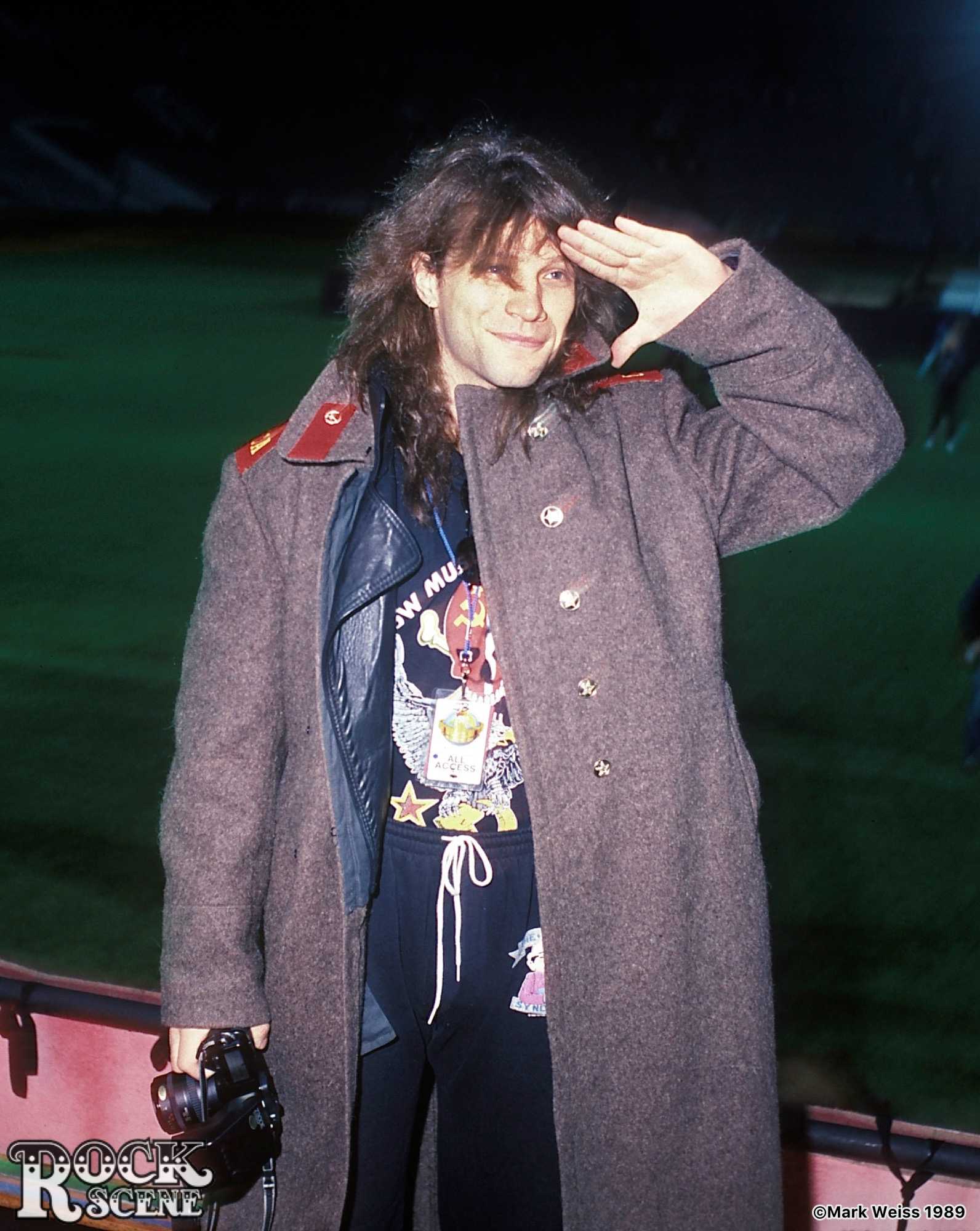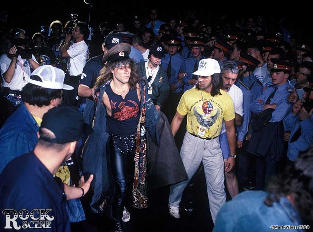 Джон Бон Джови надевает советскую военную форму на Московском фестивале мира в Советском Союзе в августе 1989 года