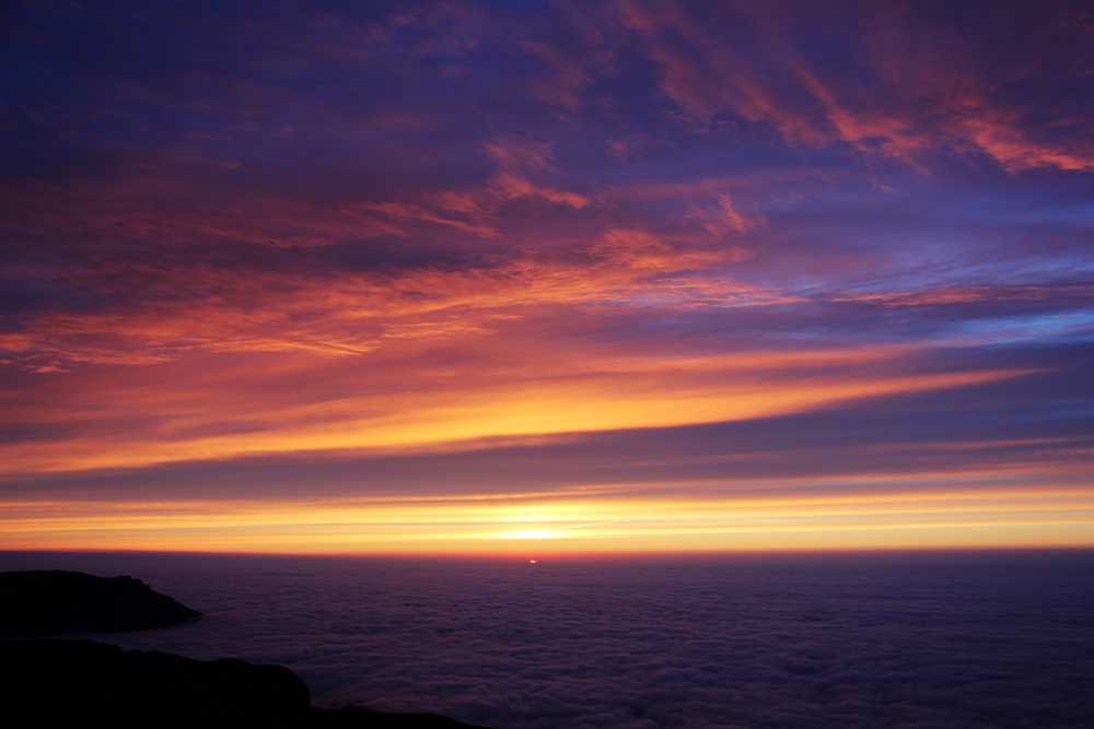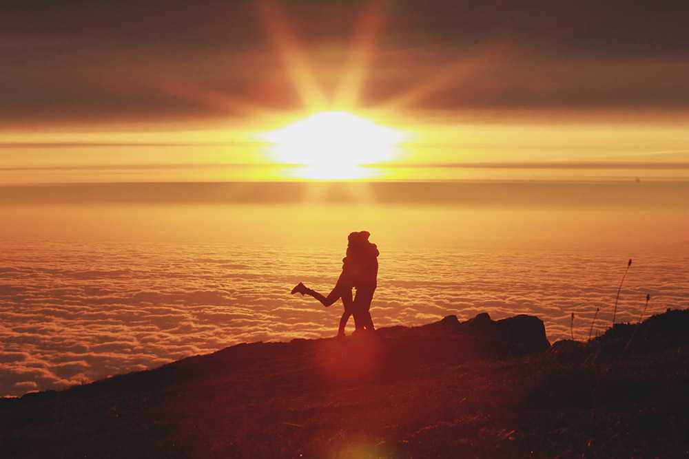 У нас была очень хорошая традиция: каждый год в конце октября мы отправлялись на ночевку на вершину, чтобы проводить закат и встретить рассвет над ковром из облаков. Звали всех желающих, собирали большую компанию единомышленников и душевно проводили время. Когда наступало утро, мы подымались на гору и стояли, замерев, в ожидании первых лучей. Небо постепенно окрашивалось яркими цветами, снизу тянулось море густых облаков, а мы передавали друг другу кружку горячего чая или кофе, обнимая дорогих людей.