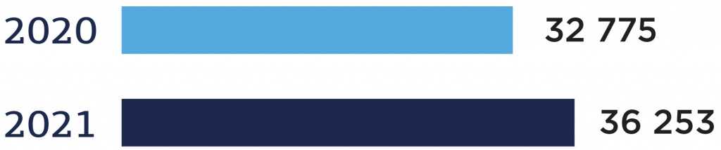 Рис. 9. Количество интернет-покупателей одежды, обуви и аксессуаров, 2020-2021