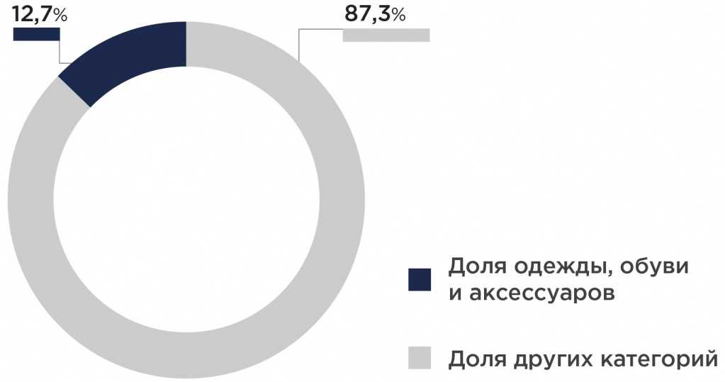 В 2021 году доля рынка fashion-индустрии в e-commerce в России составила 12,7%, по данным «РБК Исследований рынков». Это самый большой сегмент в онлайн-торговле.