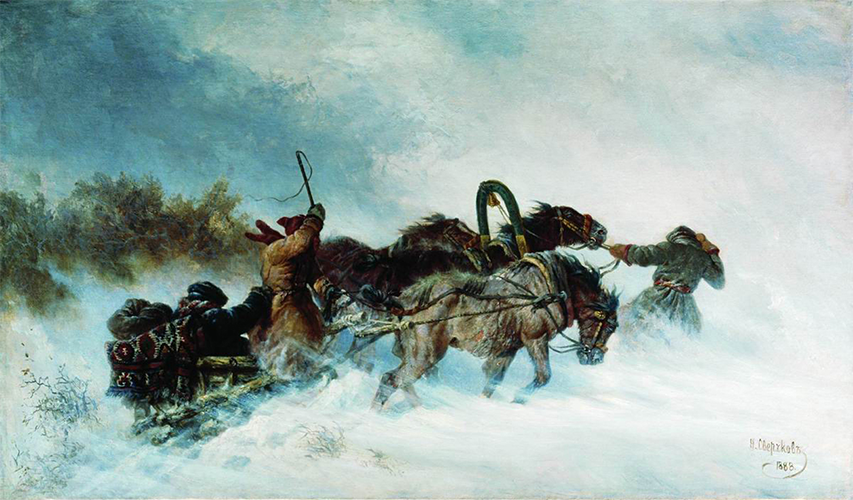 Надо полагать, что такие трагедии в жизни ямщиков были вовсе не редкостью — тем более в степи, где морозы особенно сильны, при этом нет ни укрытия от метели, ни деревьев, чтобы разжечь костер и согреться. Нередки истории, когда ямщики замерзали насмерть прямо в санях, а лошади провозили их домой. Что уж говорить — люди замерзают на автомобильных трассах и сегодня, когда оказываются отрезаны непогодой. В прошлом же добавлялись также травмы лошадей, волки и различные поломки в дороге. Кроме того отметим, что санные трассы само собой никто не расчищал — ехать приходилось по целине, отыскивая путь практически наугад.