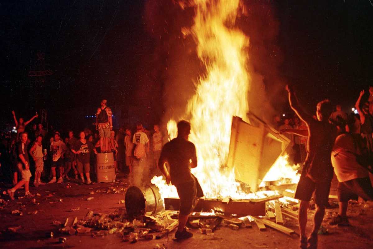 В конце фестиваля утомлённой толпе были розданы свечи для благонамеренного бдения, призванного почтить память жертв Колумбины. Однако в какой-то момент ритуал перерос в поджог места проведения. За считанные минуты небольшое пламя превратилось в большие костры, а разгневанные зрители отламывали куски сцены, крали товары, опрокидывали грузовики с едой и разрушали неработающие душевые и ванные комнаты…