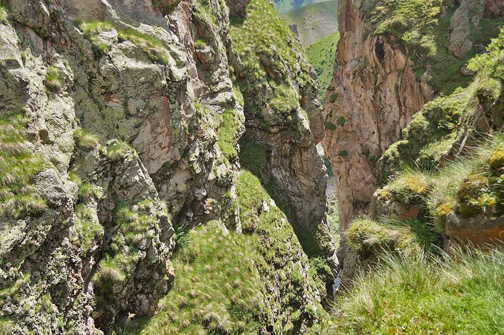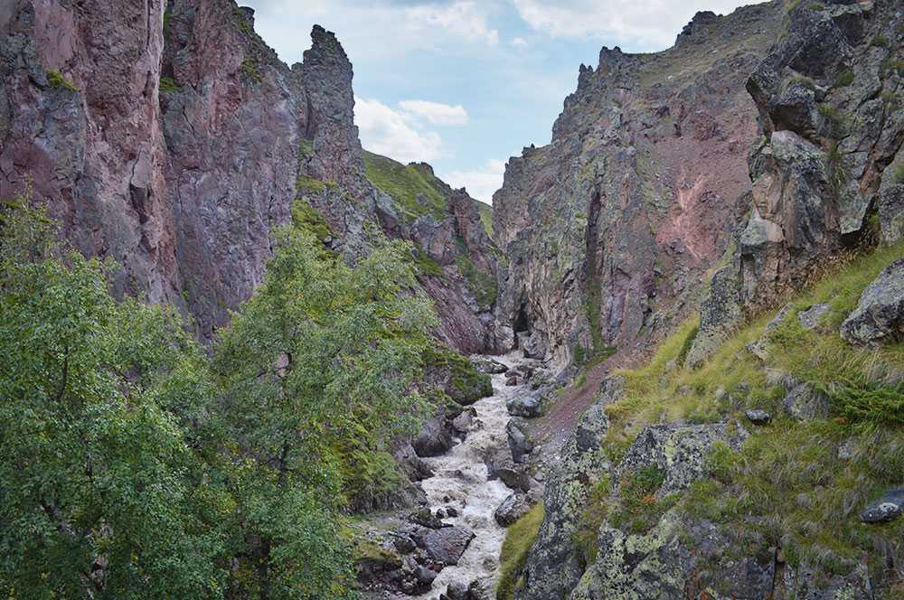 Постепенно в застывшем лавовом потоке образовался туннель, сквозь который Кызылкол – река, бурно и неспокойно протекающая под Калиновым мостом, продолжила свой бренный путь. В таком виде стоит он и сейчас – узкая тропка над пропастью, поросшая травой.