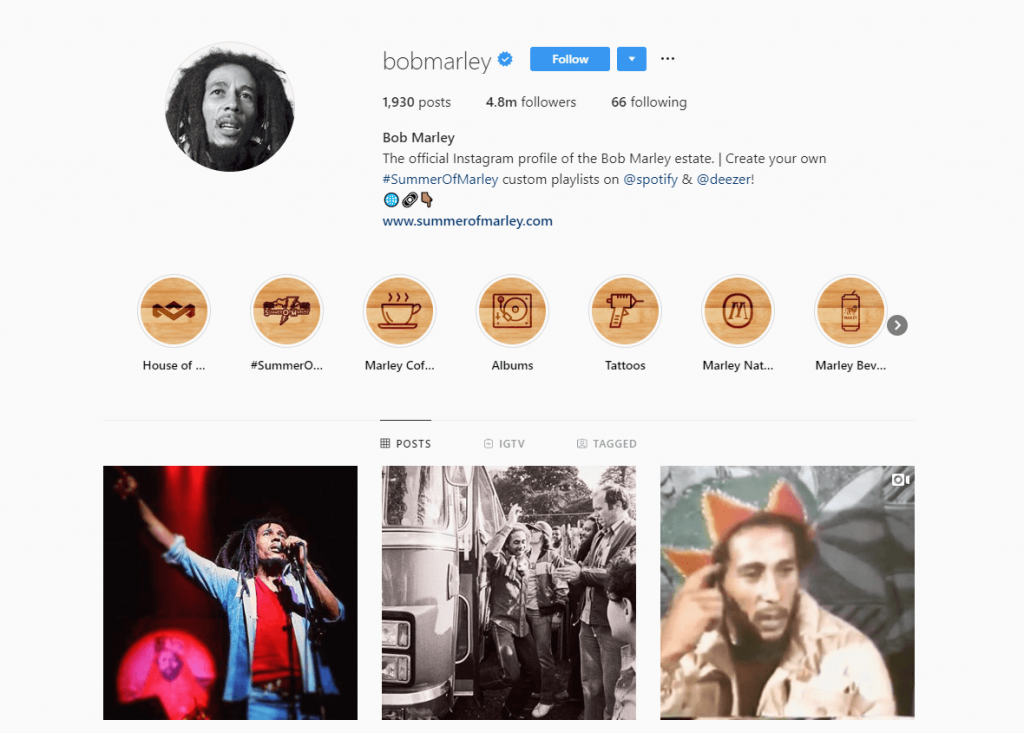This applies also to Bob Marley. If you hop over to his Instagram fan page at https://www.instagram.com/bobmarley/, you will notice just how many followers it has. Couple that with the immense numbers of likes on the posts there and you will see just how powerful the Internet can be as a tool of preservation.