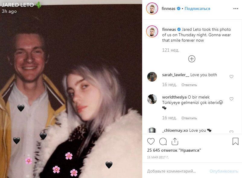 Билли Айлиш с братом. Инстаграм: https://www.instagram.com/finneas/