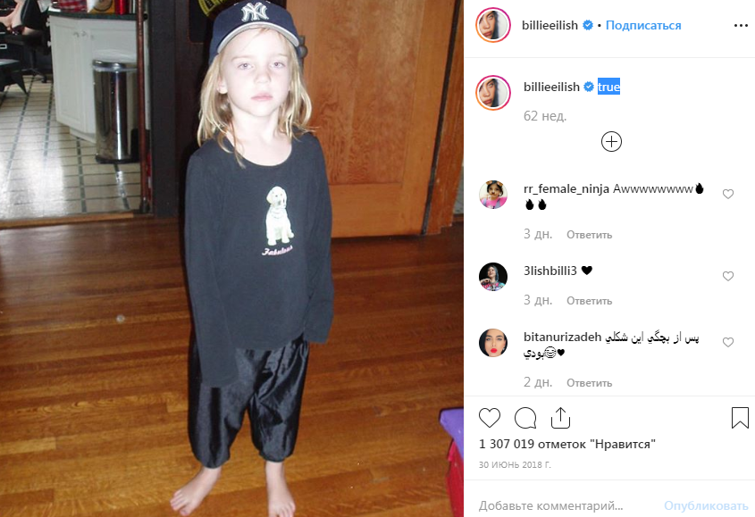 Билли Айлиш в детстве. Инстаграм: https://www.instagram.com/billieeilish/
