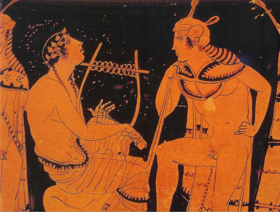 Я мог бы рассказать о пении бардов в «Илиаде» и «Одиссее», отражающем традиции, уходящие корнями в бронзовый век. Или об изображениях различных инструментов на древнегреческой керамике: там есть лиры, дудки, трубы, цимбалы, кастаньеты и барабаны. Или же о постановках классических афинских пьес вроде «Антигоны» Софокла или «Медеи» Еврипида. По сути, это были мюзиклы с вокальными хоровыми и танцевальными ансамблями и инструментальным сопровождением.