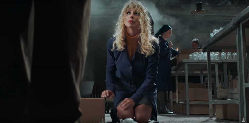 Параллельно на заводе работает жена инженера (которую играет Светлана Лобода). На неё давно положил глаз начальник производства и брат её мужа (Тилль Линдеманн). Он вертит её сложенную пополам семейную фотокарточку в руках, а после того, как она разбивает коробку с гранёными стаканами, вызывает на разговор и решает взять силой. Это ему не удаётся, Светлана Лобода отбивается, наносит ему рану на голове и убегает.