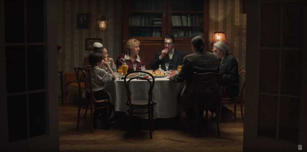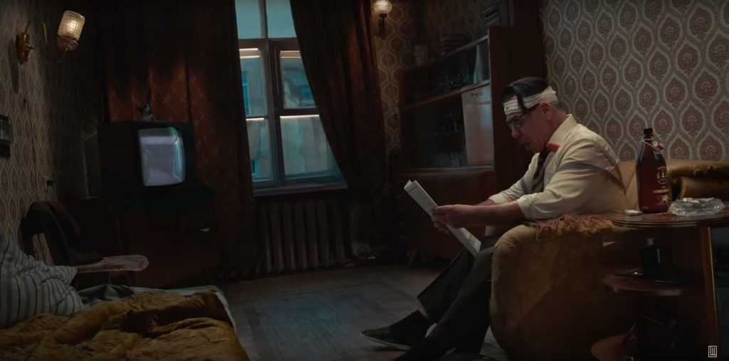 На столе, если вы заметили, селёдка под шубой, оливье, фужеры, водка в графине. Душевные разговоры прерываются визитом Светланы Лободы. Она смотрит в глаза своему несостоявшемуся насильнику. У того из раны идёт кровь. Тилль в спешке ретируется.